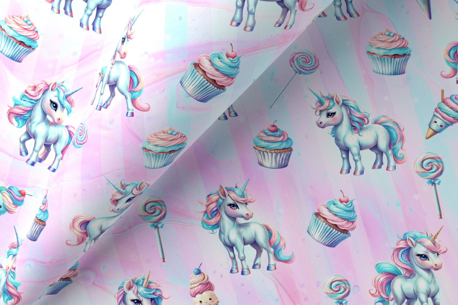 "Magic-pony" — это нежный и волшебный дизайн, который переносит в сказочный мир единорогов и сладостей. На фоне пастельных розовых и голубых оттенков изображены милые единороги с яркими разноцветными гривами и хвостами, создающие атмосферу волшебства. В композицию также включены аппетитные кексы, улыбающееся мороженое и леденцы на палочках с бантиками. Этот милый принт идеально подойдёт для маленьких принцесс, добавляя волшебства и сладости в повседневную жизнь.